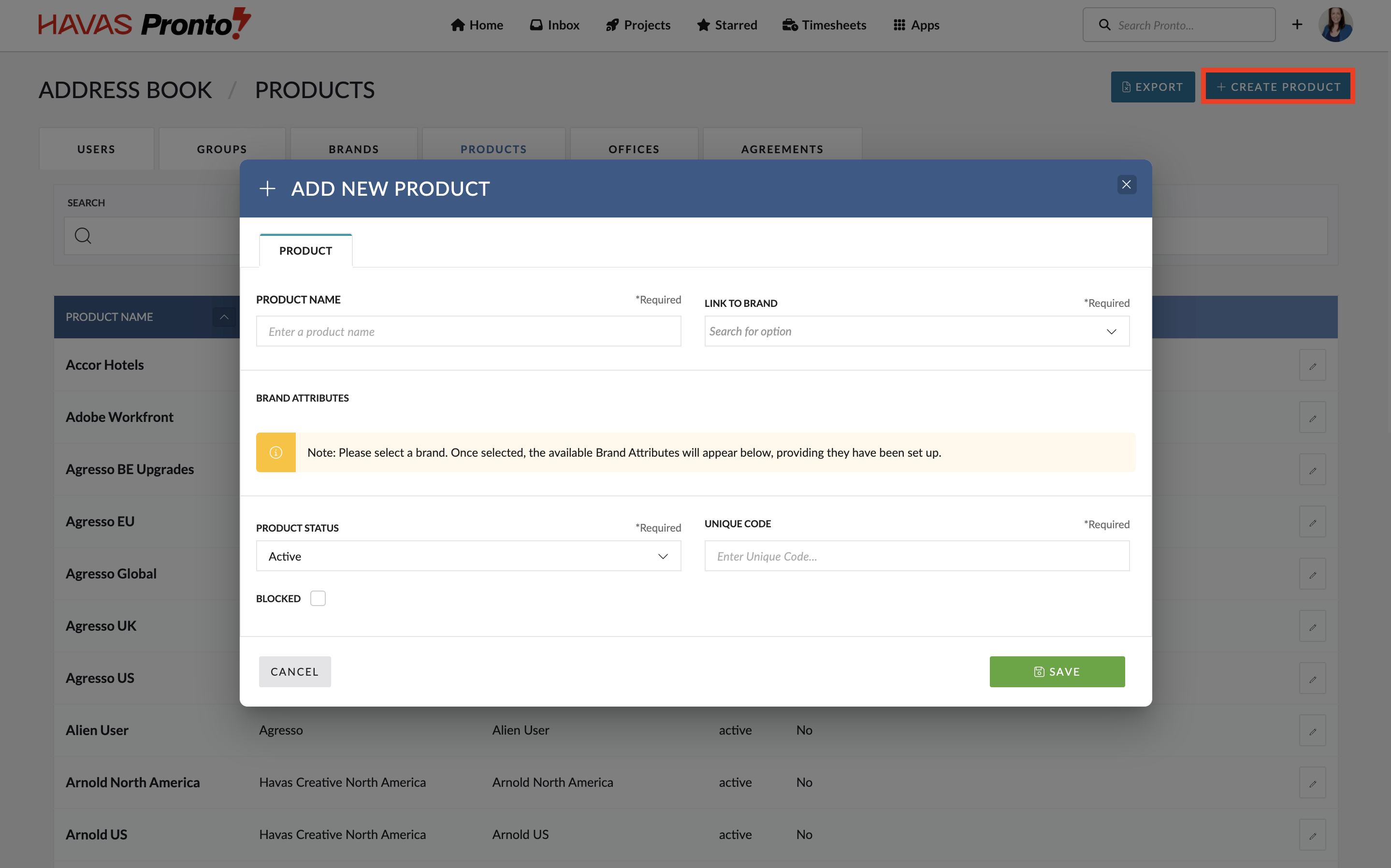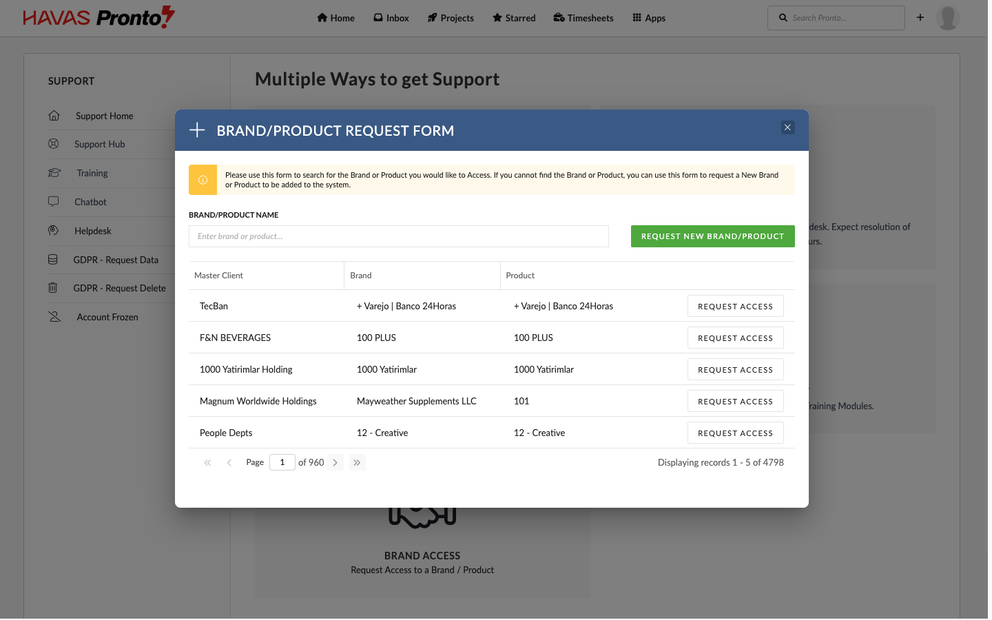 If an agency needs to work with a brand that already exists in Pronto, they can submit an access request. This simply adds a mapping between the agency and the existing brand/product, allowing it to be used in project creation.