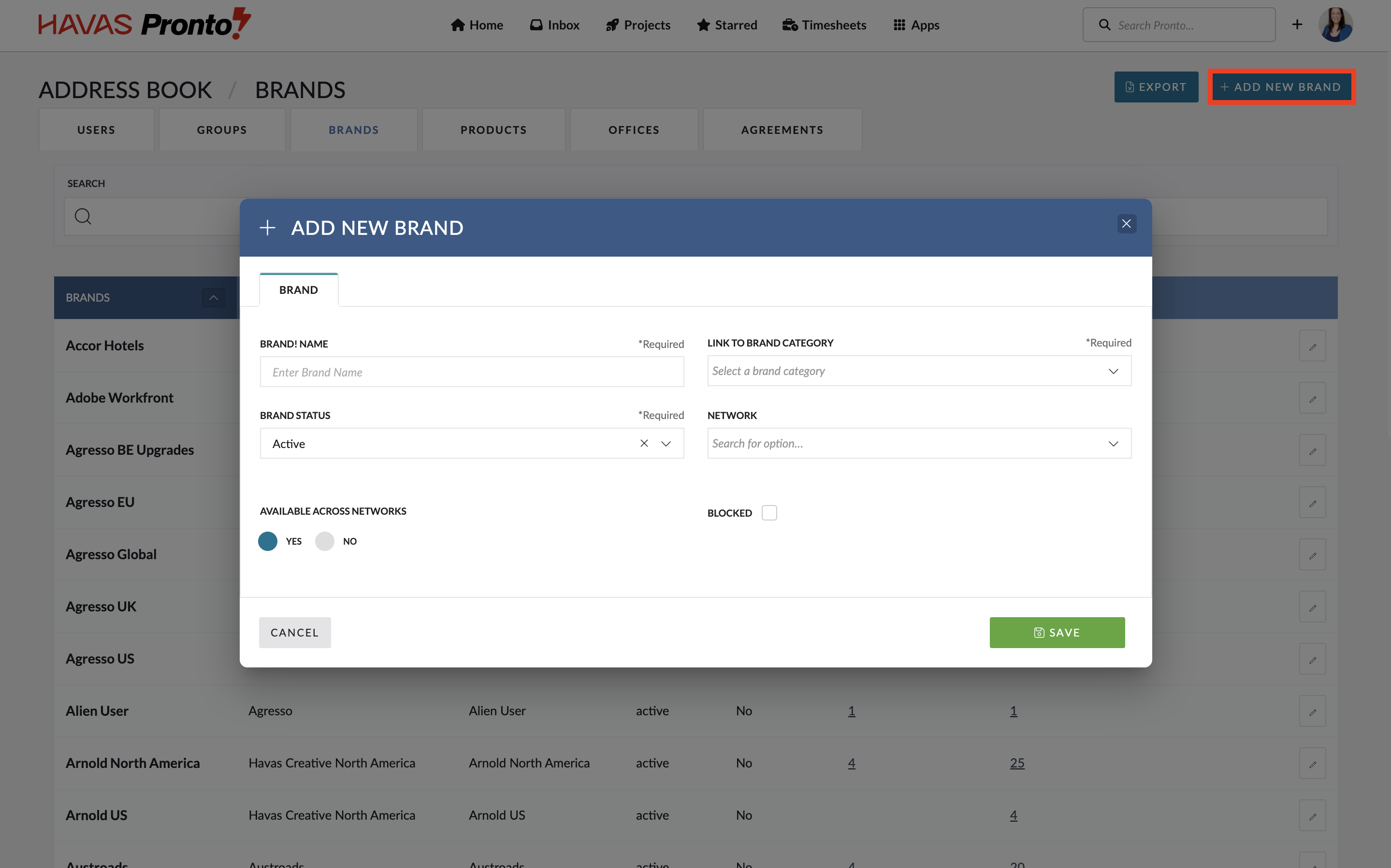 Once submitted, the request is sent to the Pronto Product Support Group for approval. When approved, the brand becomes available for use within that agency’s projects.