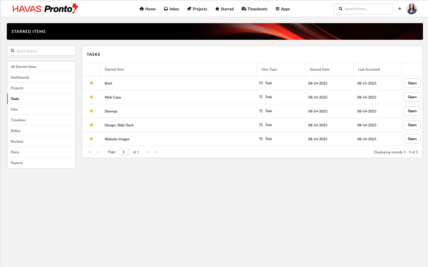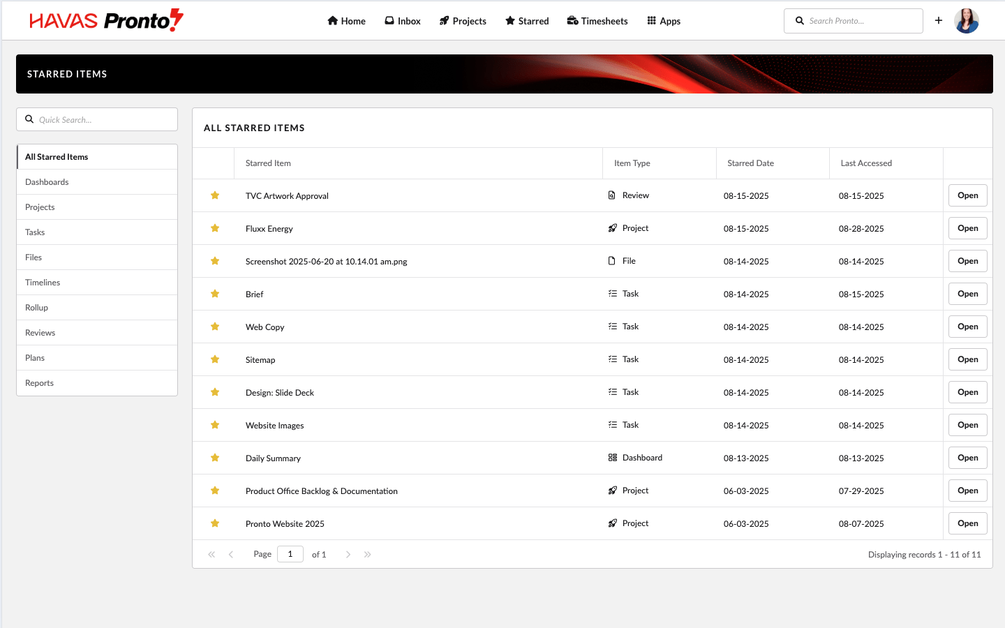 Make sure you’ve starred items elsewhere. Look for star icons in Dashboards, Projects, Tasks, Files, Reviews, Reports, Timelines, Wiki, and Plans. - My sort keeps resetting