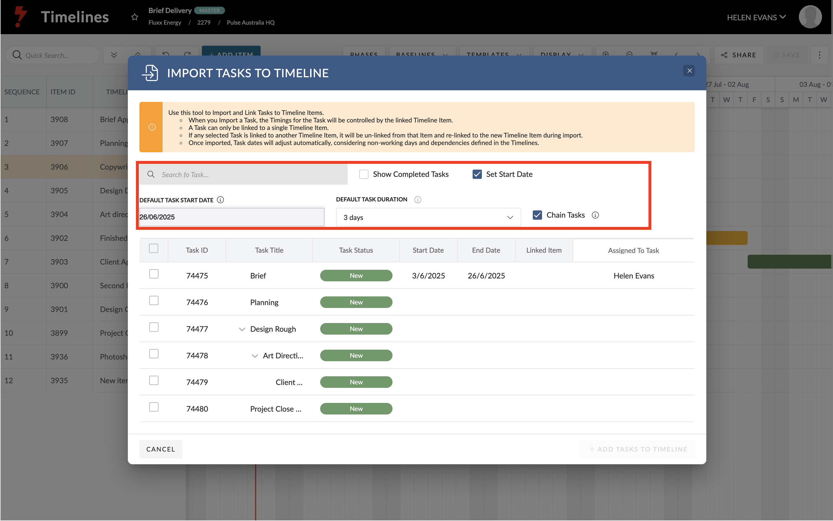 1. Import Tasks to Timeline