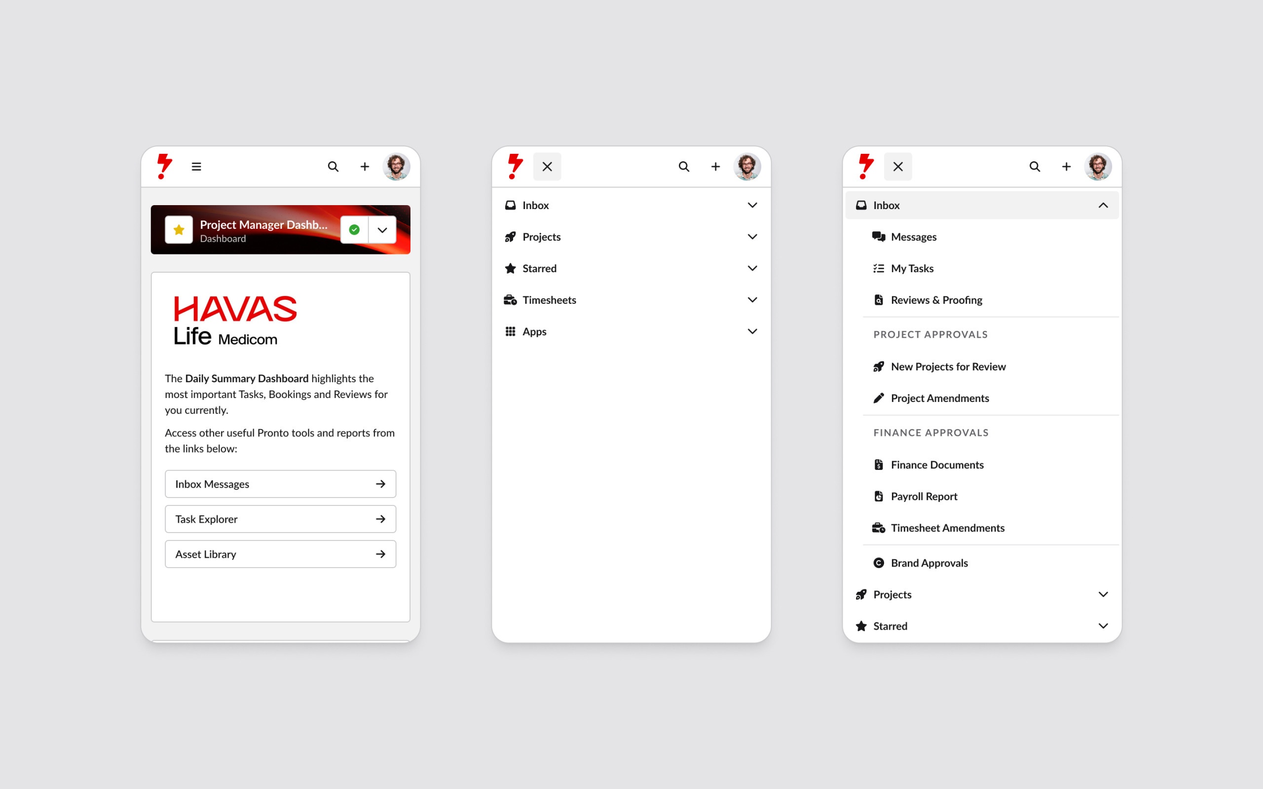The Top Navigation in Pronto is designed to get you anywhere in just two clicks.What you see is based on your User Permissions, so the features and content are tailored to your role.When collapsed, the nav stays out of your way — giving you more space to focus.