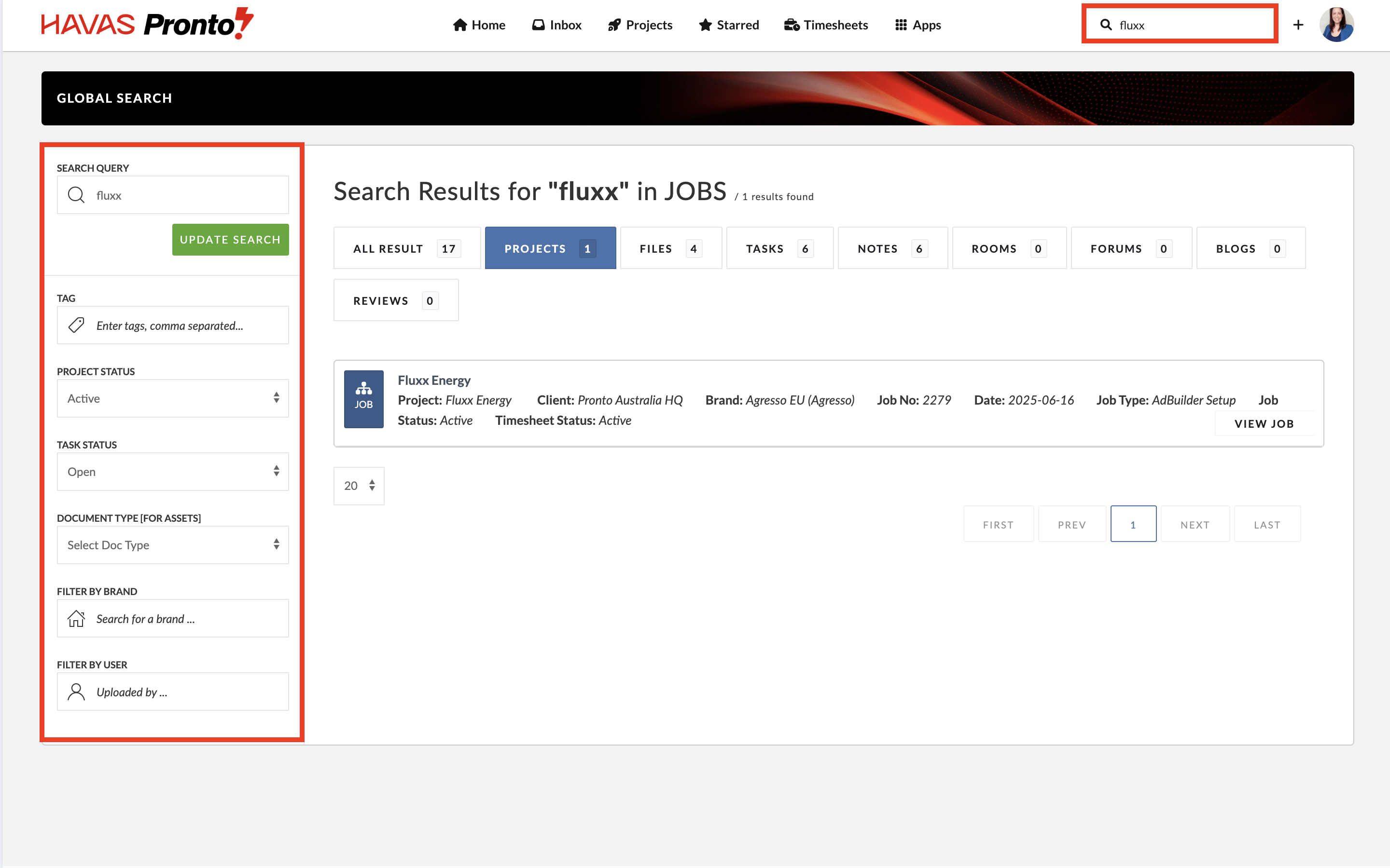 The search bar in Pronto is a universal, project-wide search tool.